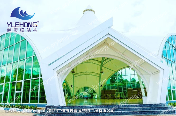 在今次的宴會(huì)廳膜結(jié)構(gòu)案例中,所設(shè)計(jì)出寶塔型的膜結(jié)構(gòu),及選用玻璃墻整體搭配,體現(xiàn)出宴會(huì)廳高端大氣。獨(dú)特的外觀能巧妙的成為風(fēng)景中個(gè)性化建筑美,整體空間建筑能讓人感覺是非常高檔的一個(gè)場(chǎng)所。此案例施工方面,按質(zhì)量驗(yàn)收統(tǒng)一標(biāo)準(zhǔn),短期內(nèi)大概25天完工。
