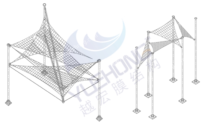 越宏膜結構廠家的景觀膜結構是由鋼結構和膜材組成,分別有張拉式膜結構、索膜結構、骨架式膜結構、空間結構式等樣式選擇,根據不同場景進行設計出個性化膜結構。
